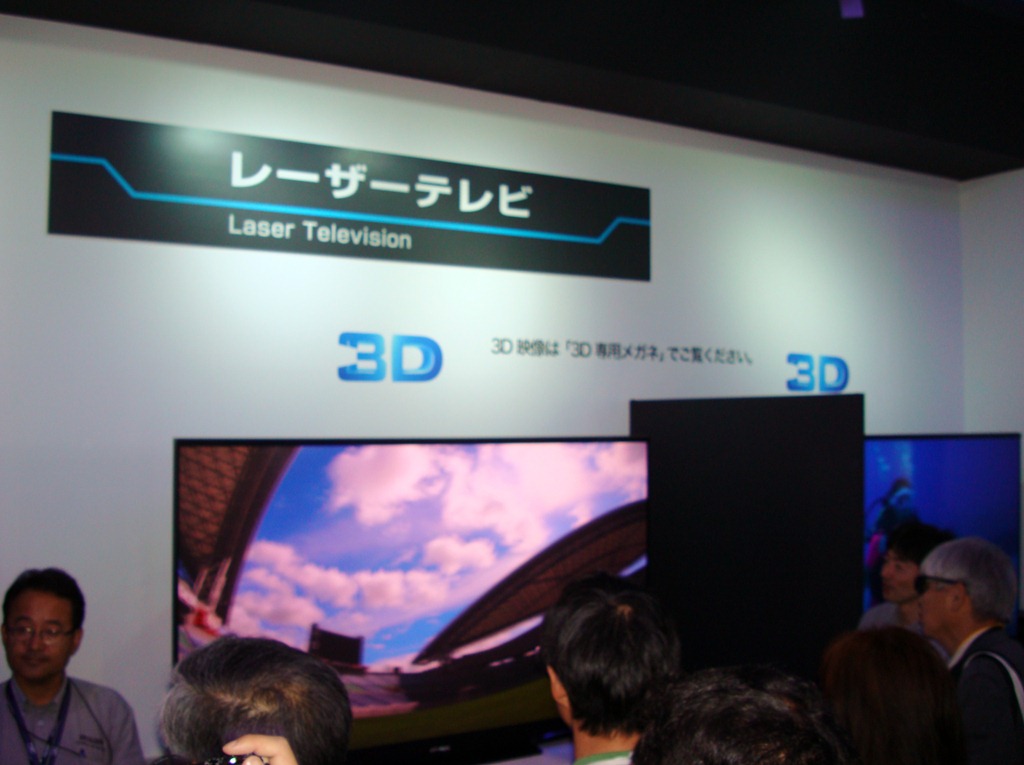 Sony appears to have given up on the laser television set concept since they last showed a prototype at CES 2008 (maybe it was CES 2007). Mitsubishi is now shipping a solution, in 2D and 3D flavors, in the form of its LaserVue line. Lasers provide an amazing viewing angle and better color fidelity, although they do tend to appear dimmer. I’m curious how long the diodes last, and how expensive they are to replace. Either way, it’s very cool. Anyone know if staring at a laser set is bad for your eyes?