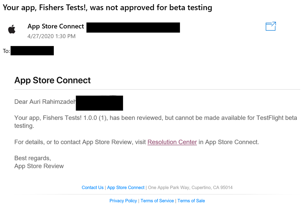 6. Problem solved. “TestFlight Unavailable” error went away.