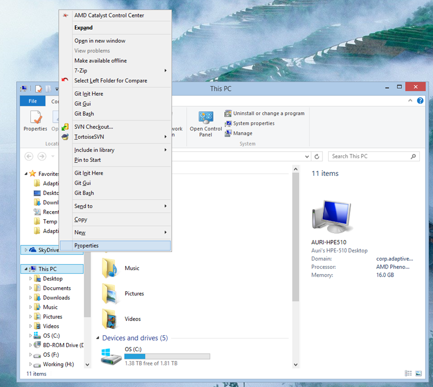 1. In Windows Explorer, right-click SkyDrive and select Properties.
