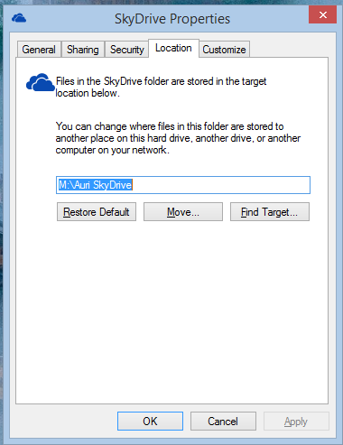 2. When SkyDrive Properties appears, select the Location tab and click Move.