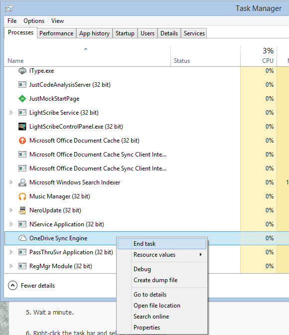 3. Make sure the OneDrive app isn’t running – right-click it and select Close if you see it in the taskbar.