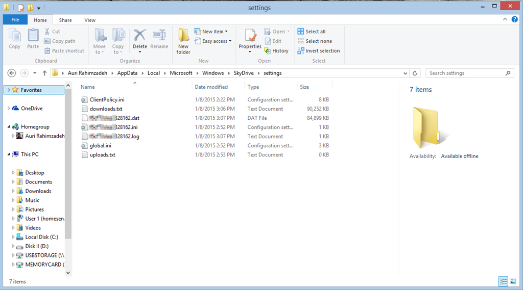 C:\Users\your user account name\AppData\Local\Microsoft\Windows\SkyDrive\settings