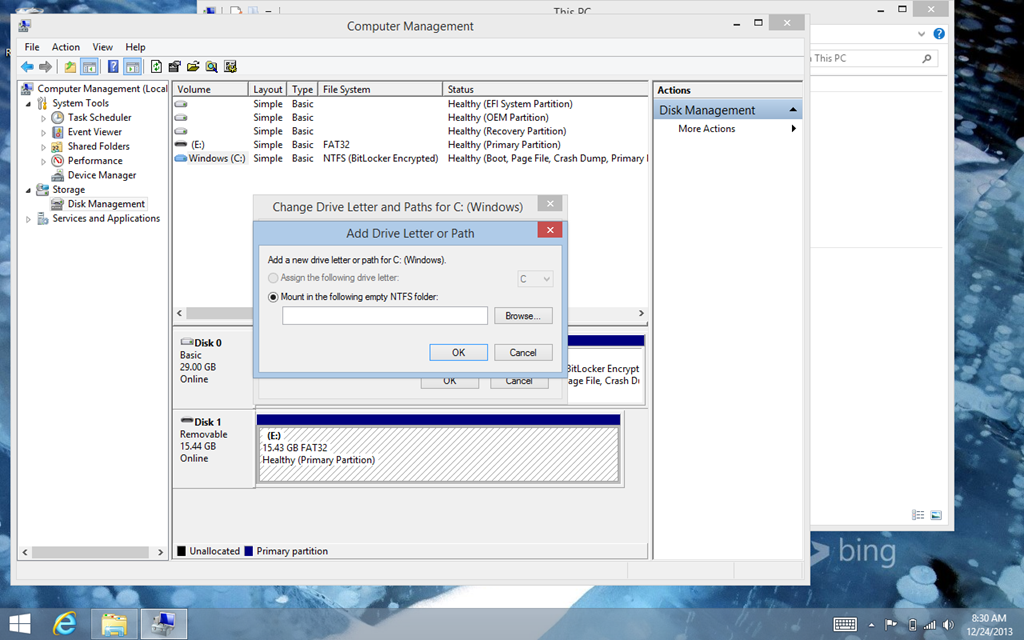 Using a feature in NTFS that allows you to permanently point the contents of an empty folder to another drive, in this case the MicroSD, you can install anything you want in that folder, and it won’t affect the available drive space on C:, safely keeping everything in the “remote” storage location. These remote locations are called NTFS Mount Points.